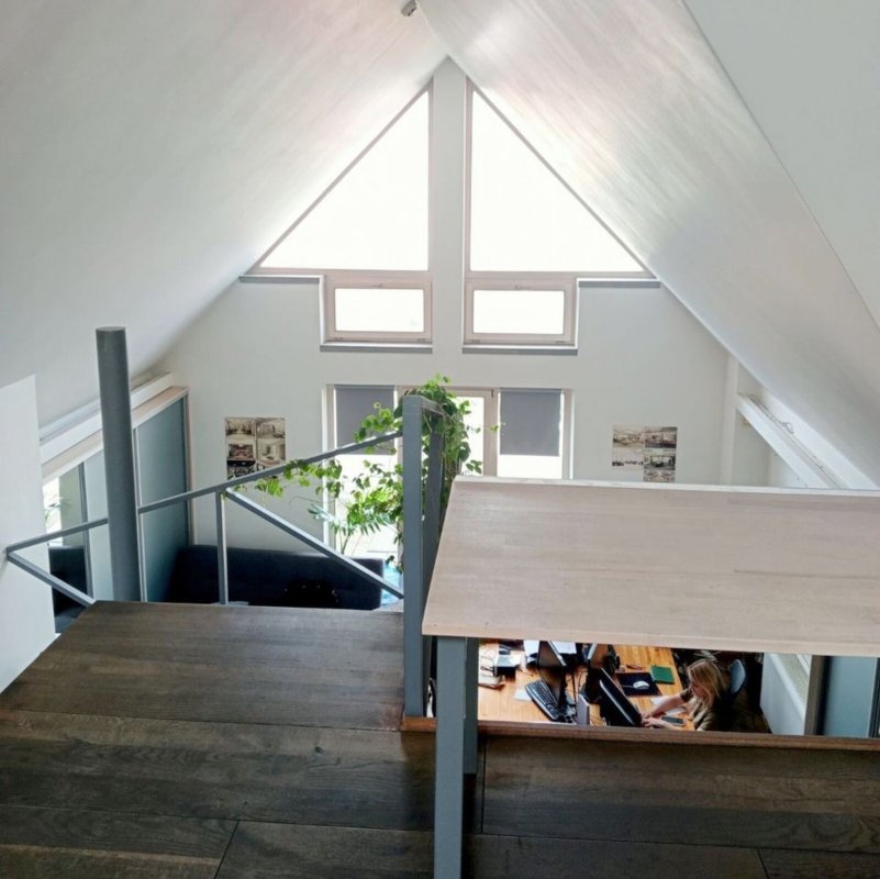 Площадь - 97 м2, двухуровневая планировка, 2 кабинета.