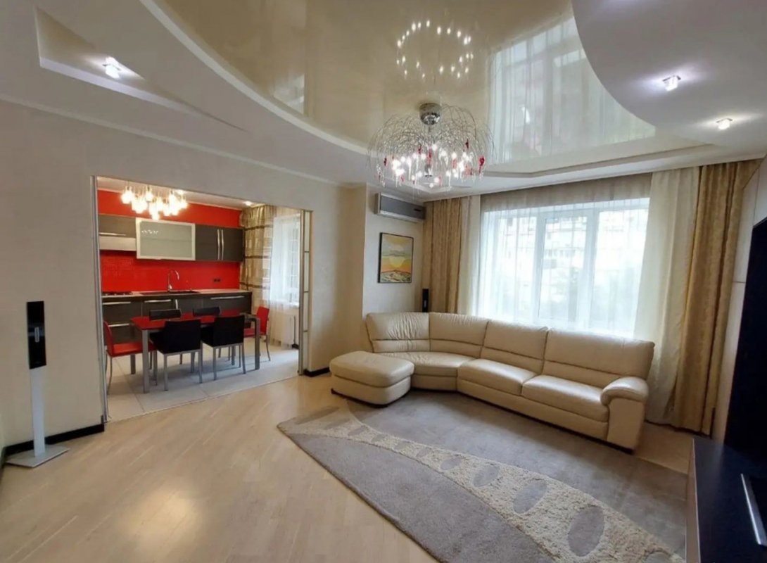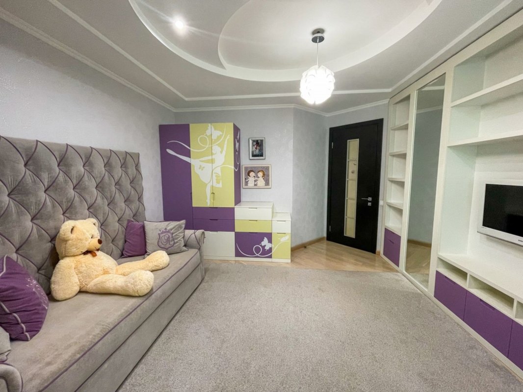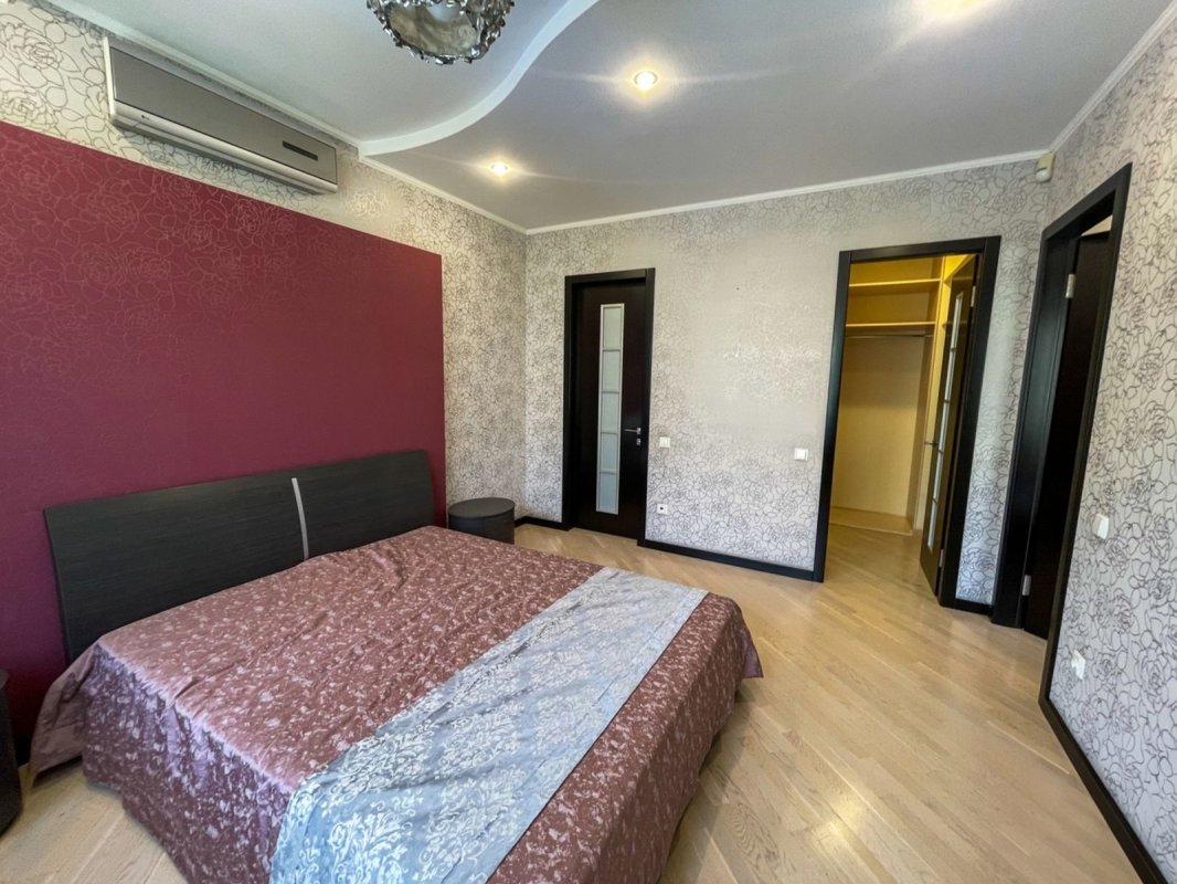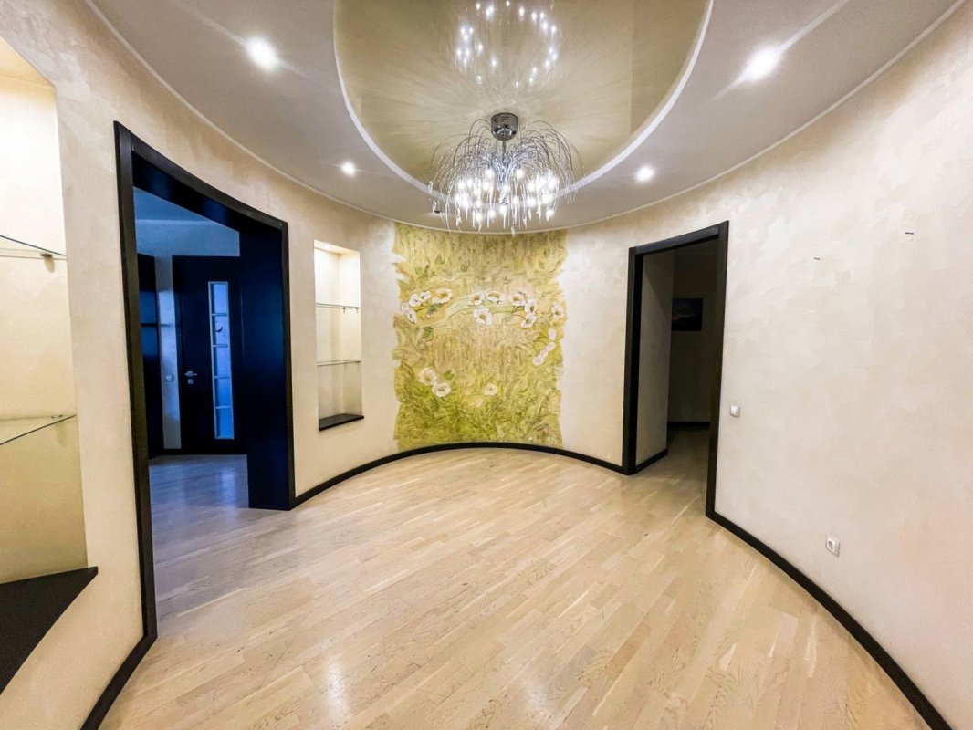 Просторная, 150м2, спланирована как кухня, гостиная, 3 спальни, 2 санузла, 2 гардероба, большой холл, 3 балкона.