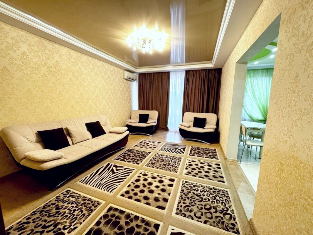 Площадь 100 м2, спланирована как просторная кухня, гостиная, две раздельные спальни с гардеробными, 2 санузла, балкон, большой коридор.