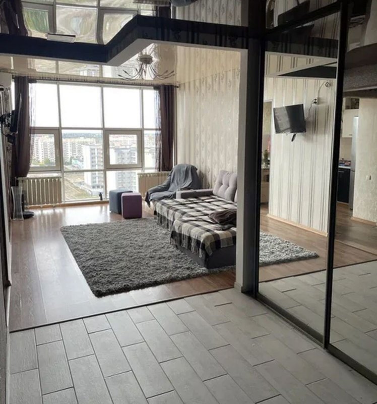 Площадь 70 м2, спланирована в кухню-гостиную, большую отдельную спальню, совмещенный с/у.