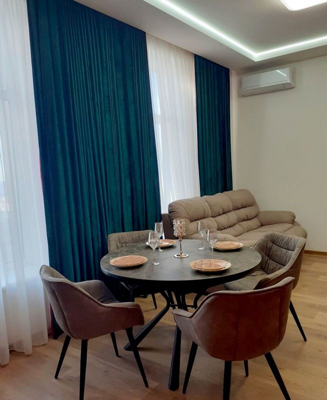 Спланирована как кухня-студия, 2 раздельные спальни.