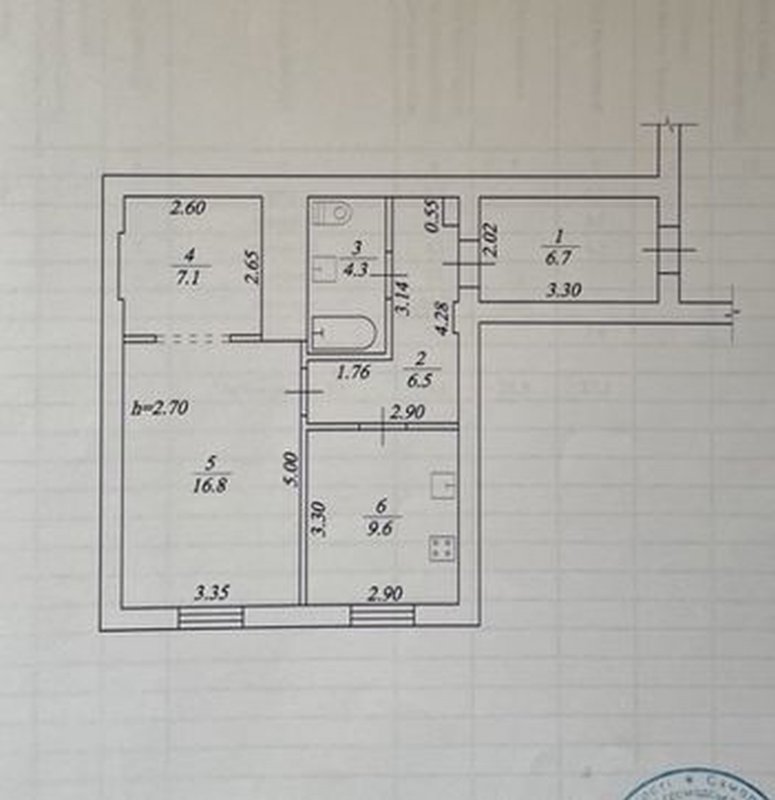 Площадь 51м2, 5/5 этаж.