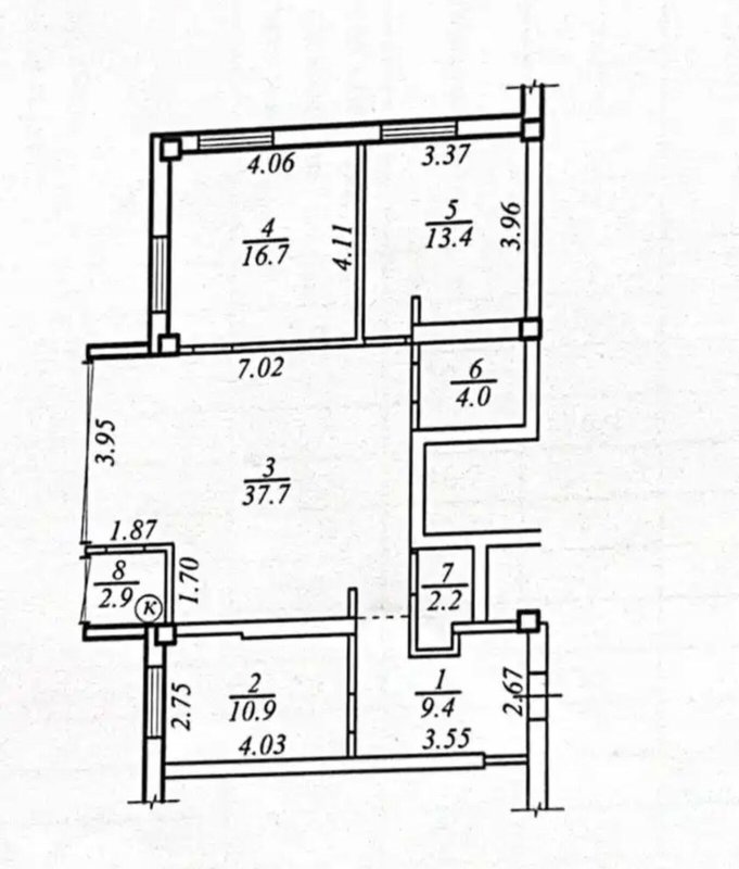 Площадь 97м2, спланирована как просторная кухня - гостиная (38м2) и 3 раздельные спальни, 2 санузла.