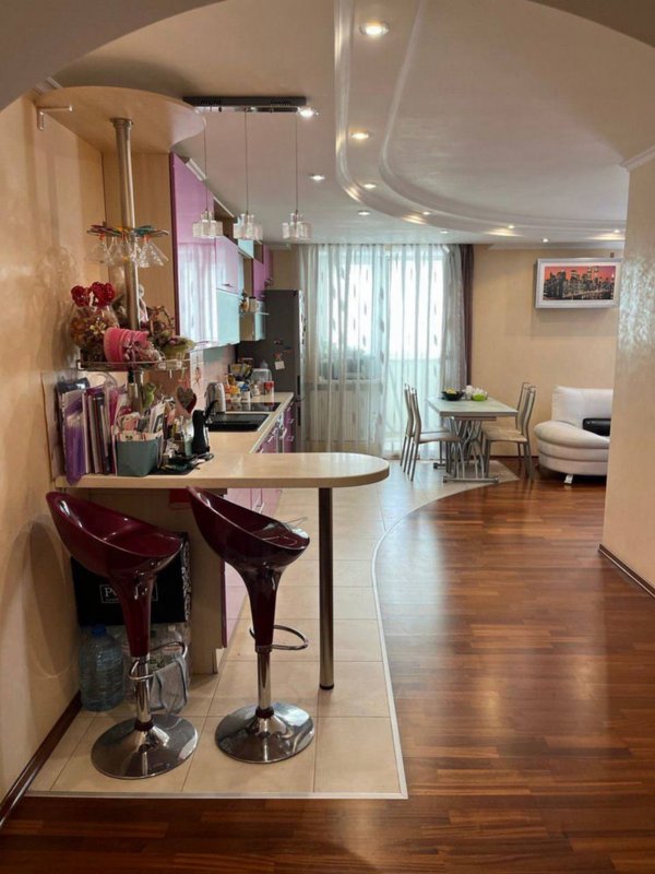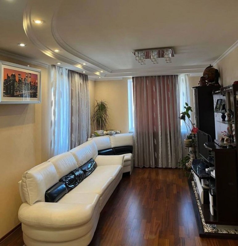 Площадь 114 м2, спланирована как просторная кухня - гостиная и 3 раздельные комнаты, 2 санузла, 3 лоджии.