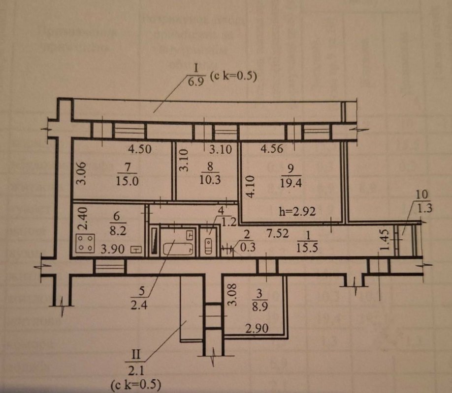 Площадь 92м2, все 4 комнаты раздельные, большой балкон и огромная лоджия (выход с 3-х комнат). Высокие потолки (2.90). Двухсторонняя.