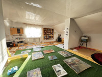 - 1 этаж - большая кухня (24м2) с выходом на огромную террасу, гостиная с камином, комната, кладовая, санузел, гараж