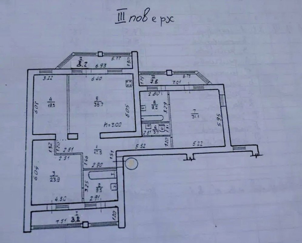 Площадь 178 м2, высокие потолки 3.10м. Спланирована как просторная кухня - гостиная и 3 раздельные комнаты, есть три лоджии, два больших санузла.