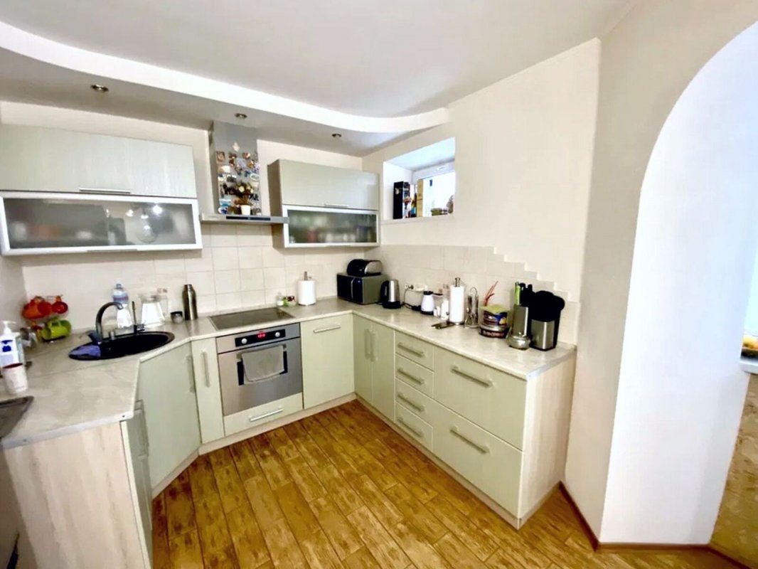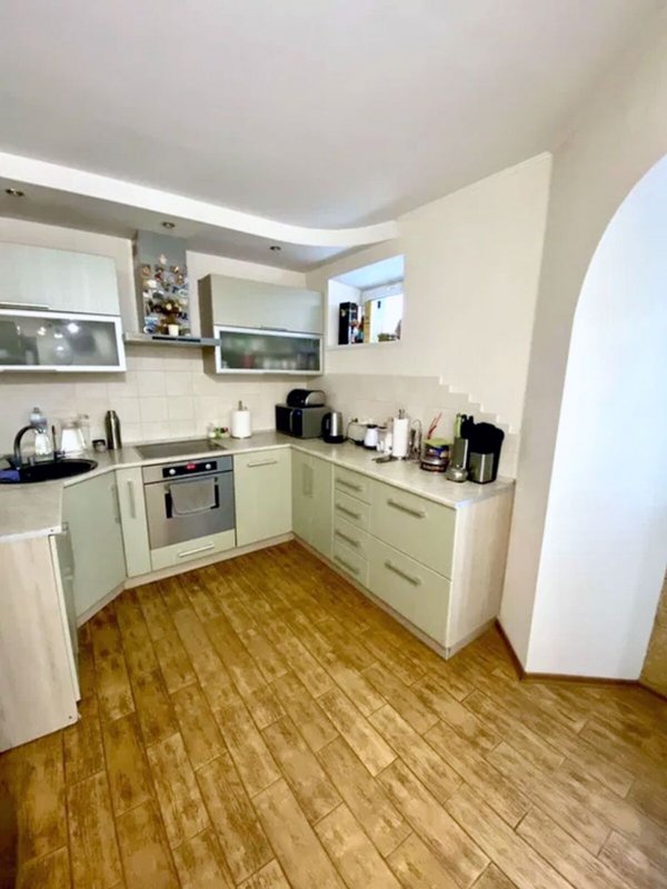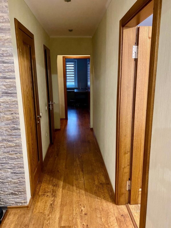 Площадь 77м2, все комнаты раздельные, 12-метровая кухня, большая лоджия.